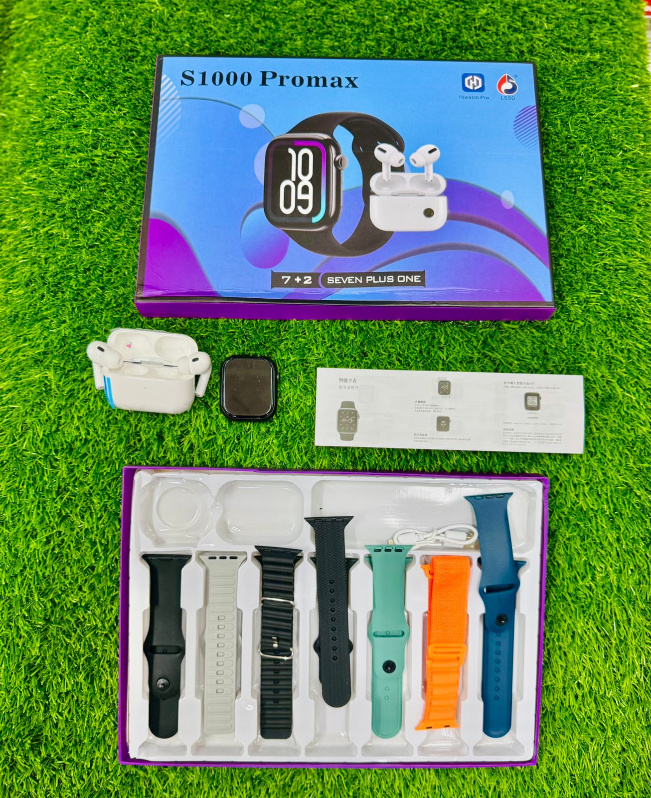 ⌚ S1000 Pro Max Smart Watch + ৭টি বেল্ট + AirPods Pro 2